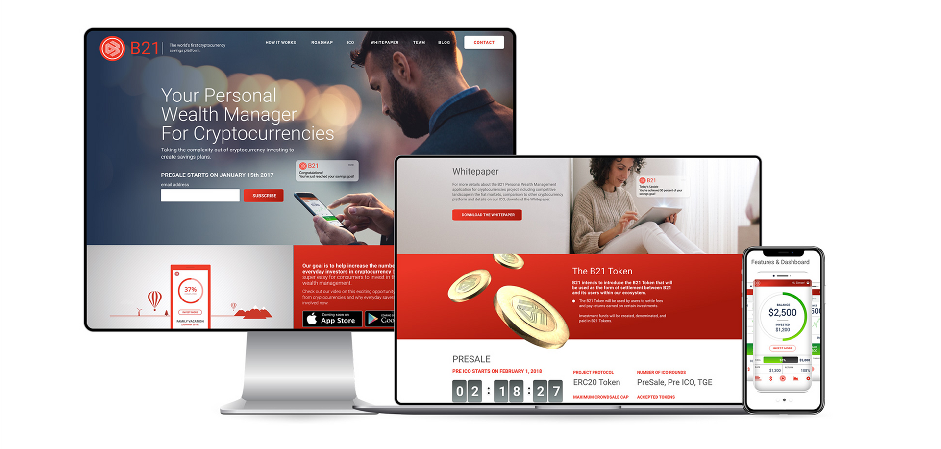 With the explosive growth of the cryptocurrency market over the last few years, B21 recognized that the average investor still faced a massive technical hurdle when considering entering the crypto space. We worked with B21 to build their brand for a successful ICO (initial coin offering) launch.