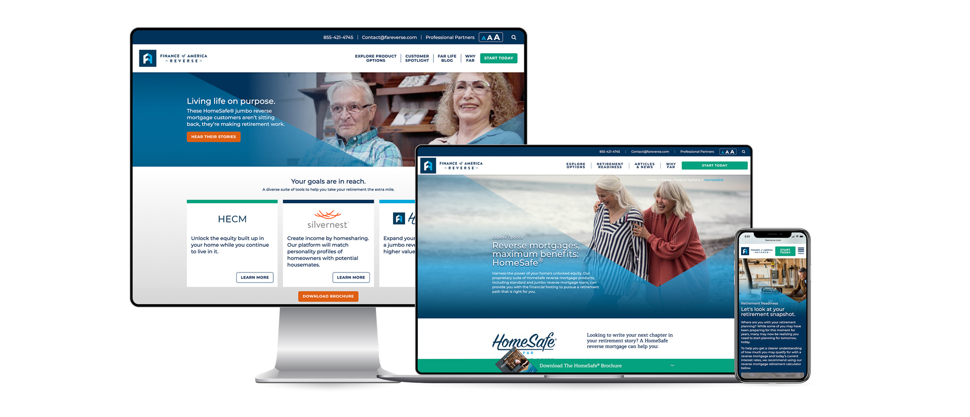Chances are if you mention the words Reverse Mortgage, it’s not something that resonates with positivity. Finance of America Reverse (FAR) wanted to change those negative perceptions and misconceptions. Our task was to bring their vision to life with a complete overhaul of their brand, marketing communications, and to move away from purchasing expensive 3rd party leads that are sold to several competitors resulting in an awful customer experience, to generating brand direct leads.
