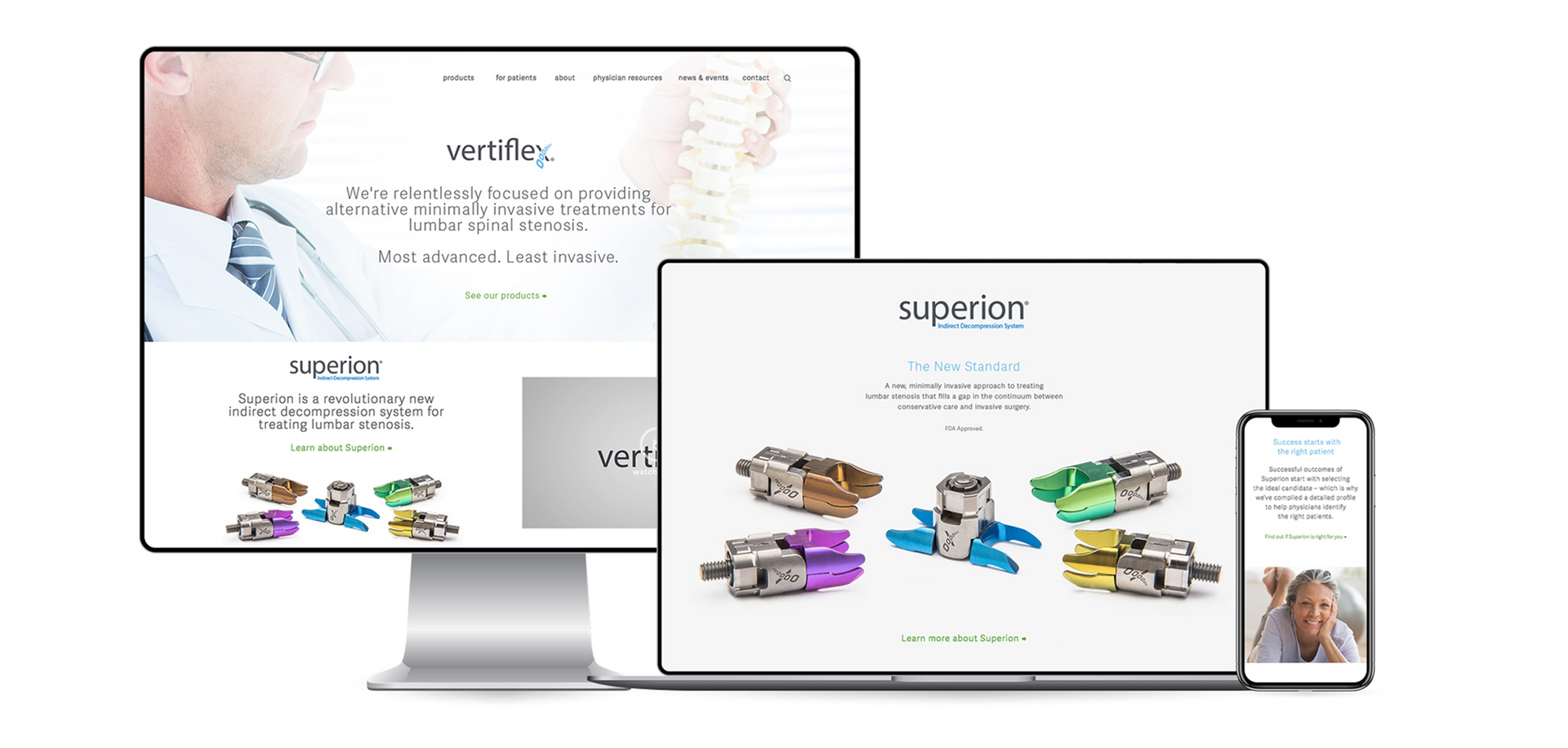 With Vertiflex receiving FDA approval on its Superion product and minimally-invasive procedure for treating lumbar spinal stenosis, ParkerWhite was tasked with helping the team build a new brand positioning strategy for the company and its products. The unique Vertiflex procedure was groundbreaking for patients and offered a new treatment option for pain management physicians with a non-opioid pain management solution that can help improve the lives of the growing number of patients suffering from chronic pain.